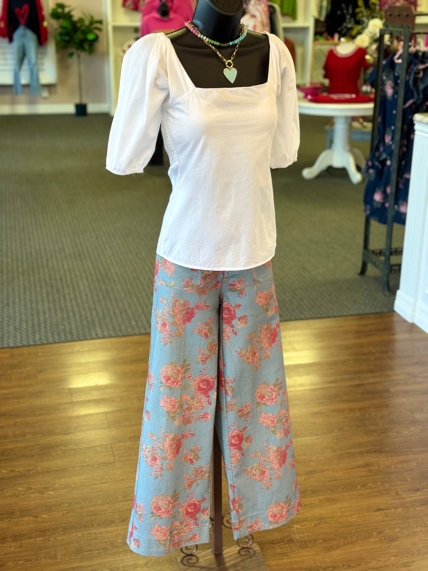Vintage Rose Floral Wide Leg Pant